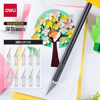 得力(deli)DIY刻纸雕刻刀美工刀手工剪纸刻刀橡皮章学生文具纸雕模型刀具雕花笔刀148mm 深灰色2102