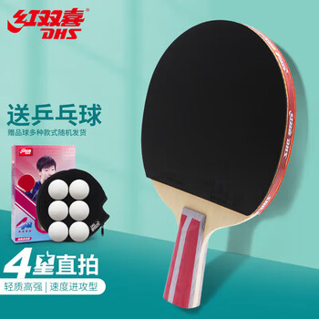 红双喜DHS狂飚乒乓球拍直拍双面反胶皮弧圈结合快攻4星H4006含兵乓球