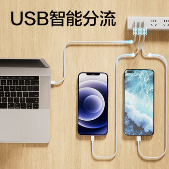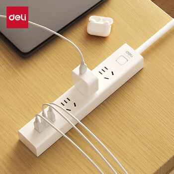 得力(deli)3C认证国标3.1A快充USB插座 插排/插线板/排插/插板/拖线板 3USB接口+3孔 总控1.8米 18288