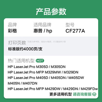 彩格cf277a硒鼓适用惠普m329dw硒鼓m429dw m405dn m305d m405d/dw墨粉盒M429fdw/fdn打印机碳粉hp77A无芯片