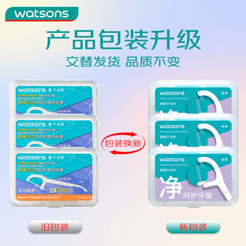 屈臣氏细滑深洁双线护理牙线棒50支*3盒(双线设计 清洁面更大)