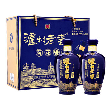 泸州老窖 蓝花瓷 头曲 52度 浓香型 白酒 双瓶礼盒升级版 整箱装 (500ml*2)*3盒