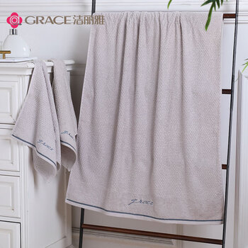 洁丽雅(Grace)浴巾家用纯棉1浴巾+2毛巾组合装成人男女柔软吸水毛巾裹巾 灰色