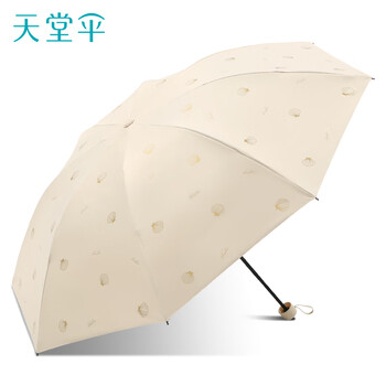 天堂 防晒阳伞三折 遮阳伞黑胶防晒伞贝壳图案三折叠晴雨伞 甘酪白