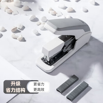 得力(deli)省力结构订书机/装订器/订书器 一指按压 适配12#钉 白色0477(不含钉)