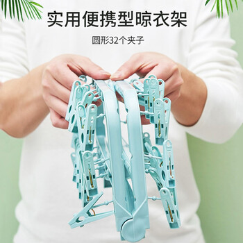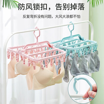 雅高塑料衣架 加厚多头晾衣夹防风强力可折叠袜子内衣架升级款32夹