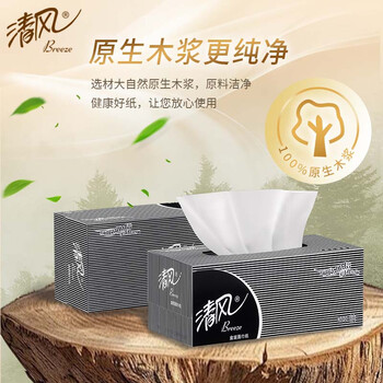 清风盒装抽纸2层200抽*9盒面巾纸商务黑白硬盒抽卫生手纸巾 B338A2