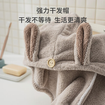京东京造 加厚干发帽 10A抗菌浴帽 超柔卡通耳饰超强吸水干发毛巾 浅棕色