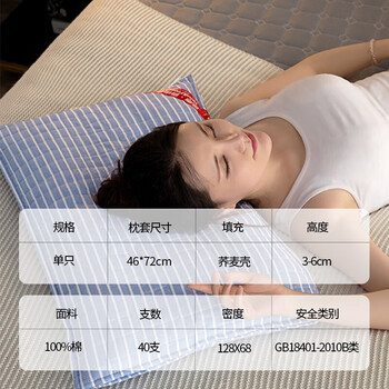 雅鹿·自由自在纯棉荞麦枕头100%全荞麦皮壳枕芯成人睡觉护颈椎枕 5斤46x72蓝纹