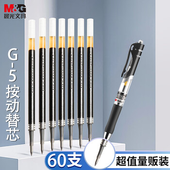晨光(M&G)文具G-5按动中性笔芯0.5替芯签字笔芯学生速干子弹头水笔芯办公用品1008/K35/S01适用 黑色60支/盒