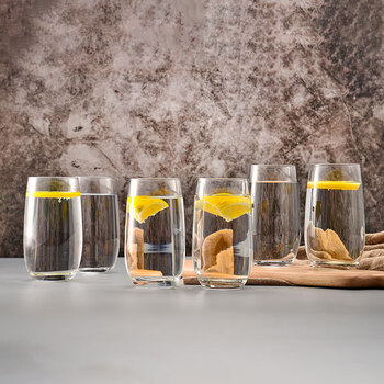 CLITON玻璃水杯家用茶杯牛奶杯果汁饮料杯办公水杯套装375ml 6只装