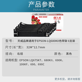 天威 LQ680K2色带 LQ690K色带架 6支装 适用爱普生EPSON LQ680KII LQ675KT LQ106KF LQ695C LQ690C