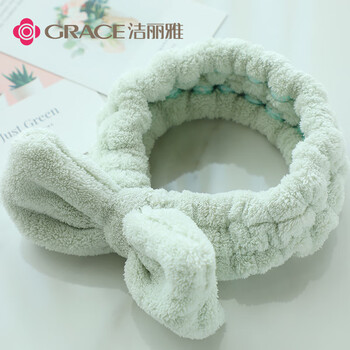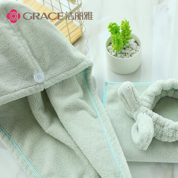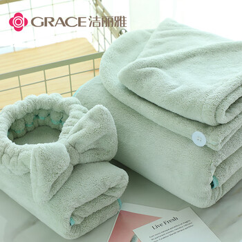 洁丽雅(Grace)浴巾可爱女家用成人吸水裹巾速干毛巾浴巾干发帽束发带绿色四件套