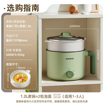 奥克斯(AUX)电煮锅 泡面锅 宿舍小电锅 电蒸锅 学生宿舍一体泡面小火锅 1.2L多功能锅 HX-12B116A 【带蒸笼】