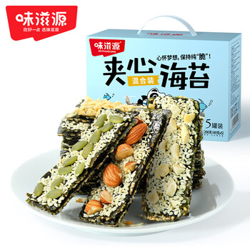 味滋源海苔夹心脆40gx5罐礼盒 儿童健康零食5种口味紫菜片 节日团购送