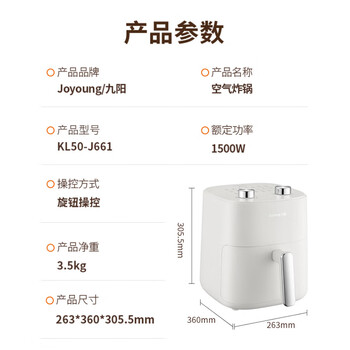 九阳(Joyoung)空气炸锅家用不沾易清洗5升无油煎炸KL50-J661