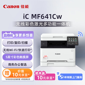 佳能(Canon)iC MF641Cw A4幅面无线彩色激光多功能一体机(打印/复印/扫描/大容量进纸 商用家用)