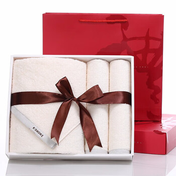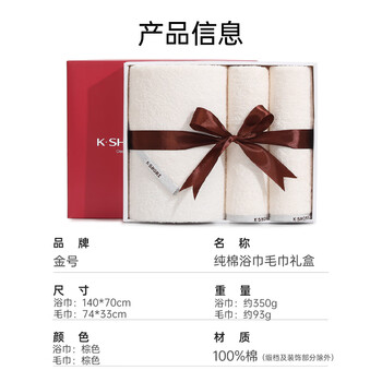 金号毛巾礼盒 A类纯棉毛巾浴巾三件套 全面毛巾套装 1浴2毛 米色