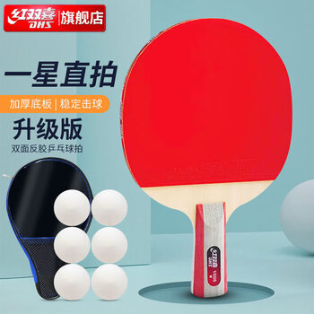 红双喜一星训练入门成品拍升级版直拍双面反胶乒乓球拍H1006含6只装球