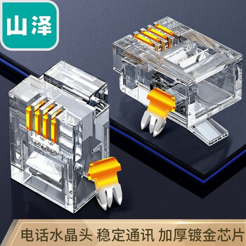 山泽 4P4C高品质电话水晶头 4芯语音电话线接头 RJ12镀金电话语音水晶头 100个 XSJ-34100