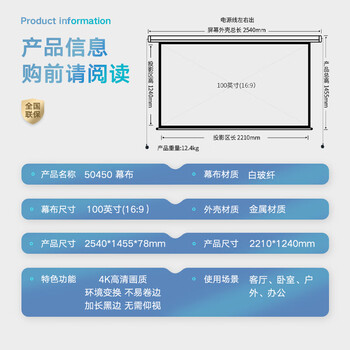 得力(deli)高端系列100英寸16:9白玻纤遥控电动投影幕布 适配坚果极米当贝 投影仪投影幕布50450【包安装】