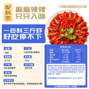 名揚名扬麻辣小龙虾调味料220g*1袋 麻辣味虾蟹调味料包啤酒虾调味品