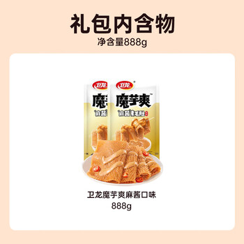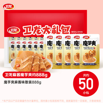 卫龙魔芋爽辣条休闲小零食麻酱素毛肚魔芋爽大礼包888g便携约50小包