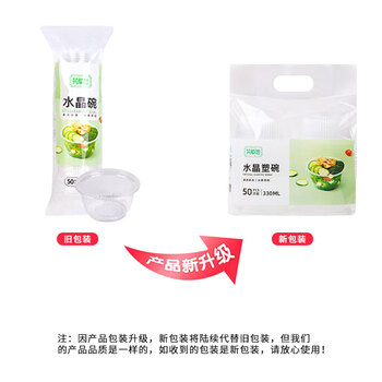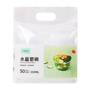 芳草地 一次性汤碗330ml*50只 透明加厚饭碗饺子汤圆碗快餐打包盒不带盖