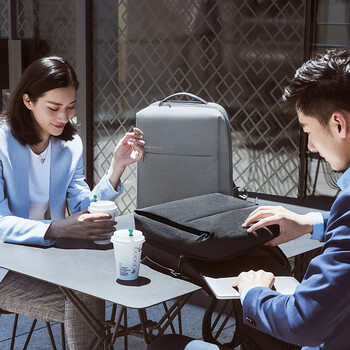 小米(MI)极简都市双肩包男士电脑包旅行出差女书包商务双肩背包浅灰色