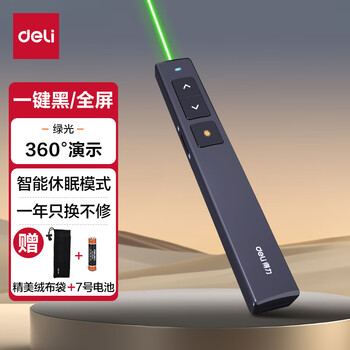 得力(deli)绿光激光笔 百米远控翻页笔演讲笔 PPT翻页笔 投影笔激光翻页笔无线演示翻页器 黑色2802G