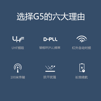G5接收机*1台 手持式麦克风*2支 音频传输线*1条 电源适配器*1个 天线*2支 角码*1套 防滚圈*2个 尾套*2个 AA电池*4节 使用手册*1份 (注:所有线材、电源适配器、电池等易消耗品不在保修范围内)