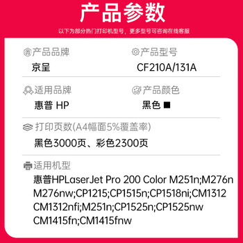 京呈CF210A/131A硒鼓四色套装适用惠普HP M251n粉盒LaserJet pro 200 Color墨盒M276n/NW cp1215 cm1415fnw打印机