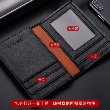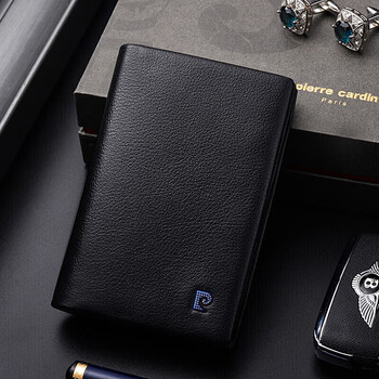 皮尔卡丹名片夹男商务头层牛皮大容量卡包礼盒送礼黑色