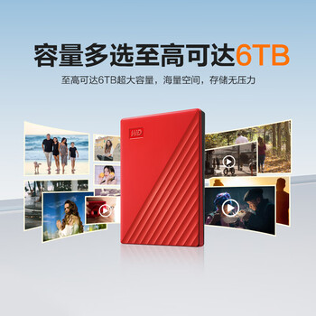 西部数据(WD)移动硬盘5TB USB3.0 My Passport随行版2.5英寸 红 机械硬盘 笔记本电脑外接 大容量加密 家庭存储