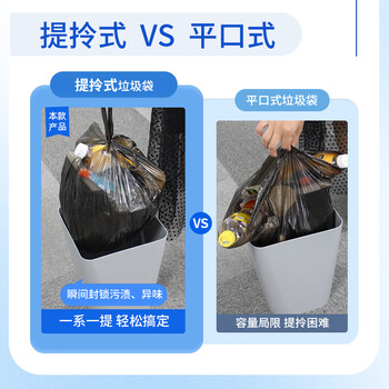 苏诺背心式垃圾袋黑色50*60cm*150只单层0.7丝点断式全新料家用办公