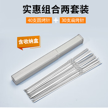 尚烤佳(Suncojia)304不锈钢烧烤签 加长扁烤签 圆烤针 羊肉串烤肉签子 烧烤配件