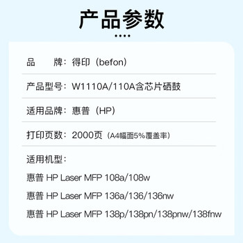 得印适用惠普136w硒鼓 W1110A 110A硒鼓易加粉 适用惠普136a 136wm 136nw 108w/a 138p 138pn 138pnw粉盒带芯片