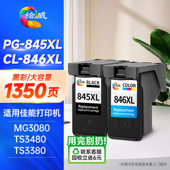 绘威PG-845/CL-846墨盒 黑色彩色适用佳能MG3080 MG3480 MG2400 MG2580S TS208 TS3380 3180 3480打印机墨盒