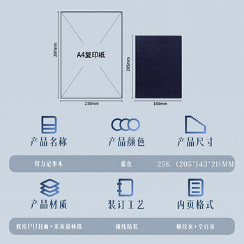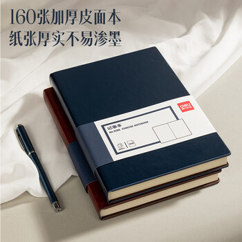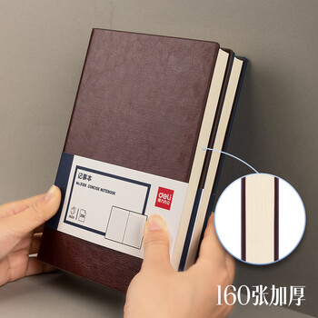 得力(deli)可定制皮面本25K160张笔记本加厚商务日记本会议记事本子办公用品3186蓝色