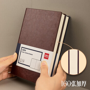 得力(deli)可定制皮面本25K160张笔记本加厚商务日记本会议记事本子办公用品棕色3186