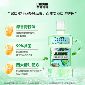 李施德林Listerine漱口水 清新果味减少细菌 樱花蜜桃500ml+椰香青柠500mL