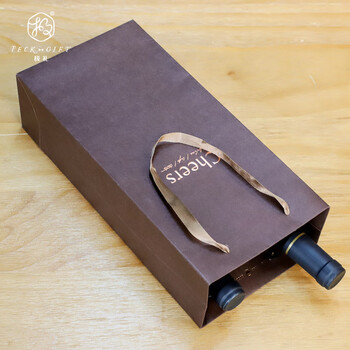 极礼红酒盒双支装纸质礼品袋葡萄酒手提袋红酒礼品袋 咖色手袋10个装