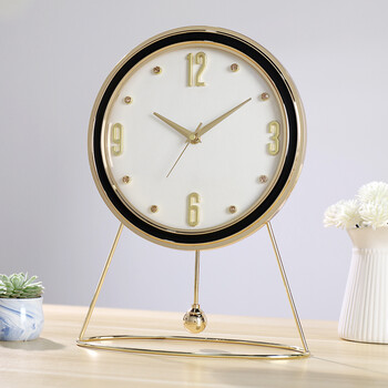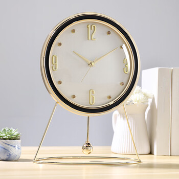 汉时(Hense)创意台钟现代轻奢桌面座钟客厅卧室台式时钟摆件石英钟表HD58白色