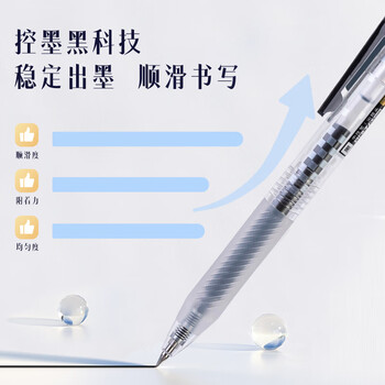 得力S18-B简约臻干净扩容速干按动中性笔0.5mm尖锥头(黑)(支)*12