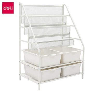 得力(deli)收纳型绘本架书架 学生儿童办公居家 3层绘本层 2层置物层含4个收纳盒50502