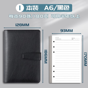 法拉蒙 faramon 活页笔记本子文具A6商务办公记事本小号活页本可随身携带皮面日记本 A6-黑色