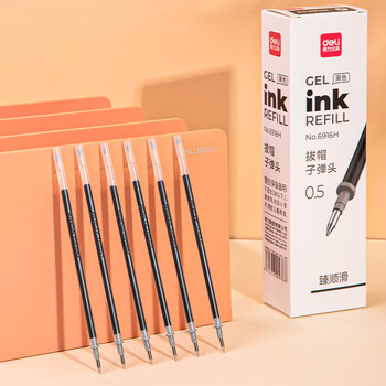 得力(deli)臻顺滑中性笔替芯 速干办公学生水笔签字笔替芯 0.5mm拔帽子弹头黑色20支/盒6916H