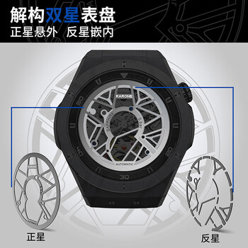雷诺(RARONE)解构派双子星RebelX男士手表机械表全自动腕表 生日礼物送男友