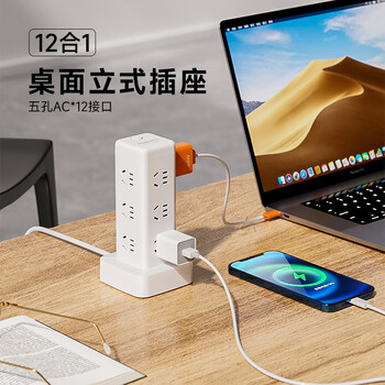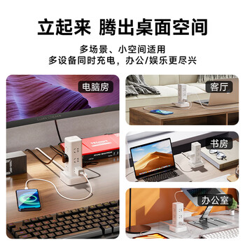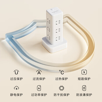 良工(lengon)魔方立式插座/插排 3层12插位2.9米 插板/排插/插线板/接线板/拖线板/宿舍家用办公 U1012-2.9白