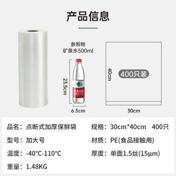 宜之选保鲜袋大号400只食品级加厚30x40cm塑料袋超市商用点断式连卷袋